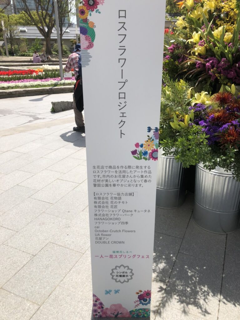 ☆一人一花スプリングフェス*ロスフラワーの展示に協力しました☆ フラワーパーク Twitter Facebook 2021.07.27 こんにちは!フラワーパークです♪ 福岡市中央区天神の警固公園にて4月4日まで行われた、【福博花しるべ2021・一人一花スプリングフェス】に フラワーパークもロスフラワーの提供に協力させていただきました! 市内のお花屋さんが協力し『ロスフラワー』を使ったアート作品★ フラワーパークだけでなく、市内のお花屋さんから集めた花材が美しいオブジェとなって春の警固公園を華やかに彩りました♪